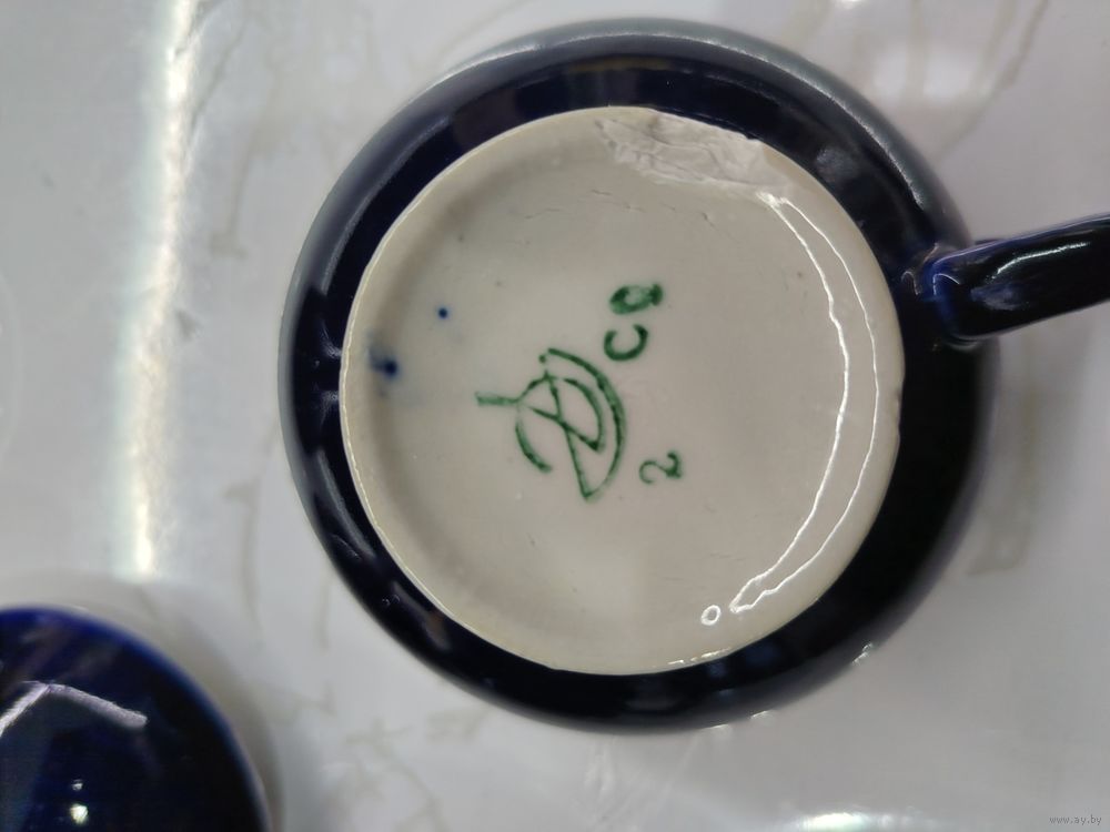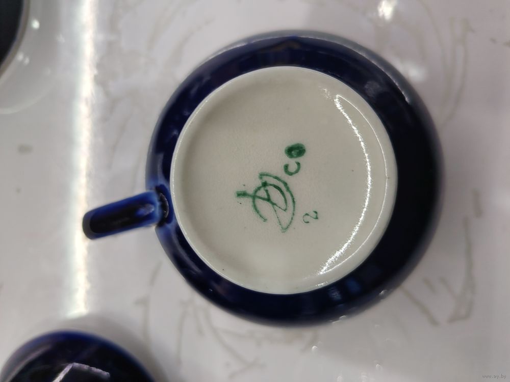 С 1 рубля!!! Сервиз антикварный/винтажный чайный, фарфор, крытье кобальтом, СССР. Нет тарелочки под масленицу 1 тарелка-трещина. Скол на чашке.