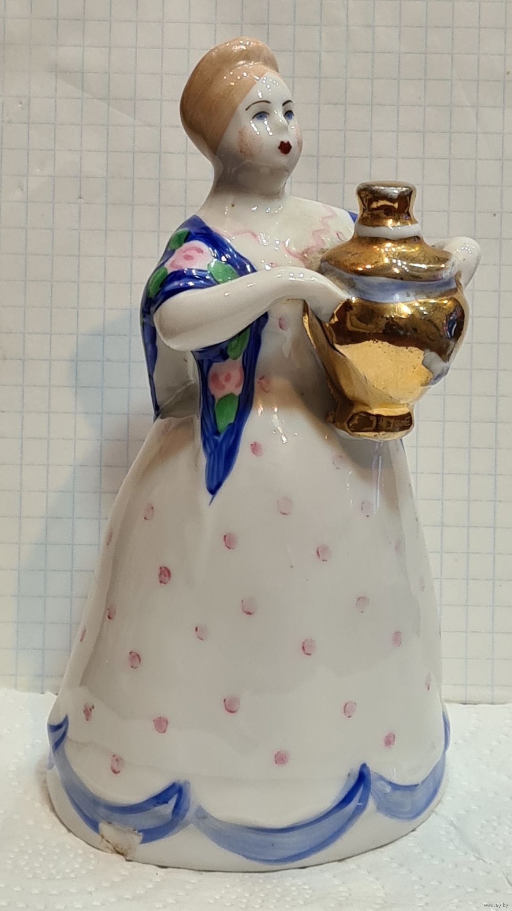 С 1 РУБЛЯ ! СТАТУЭТКА ФАРФОР ДЕВУШКА С САМОВАРОМ ДУЛЁВО СССР