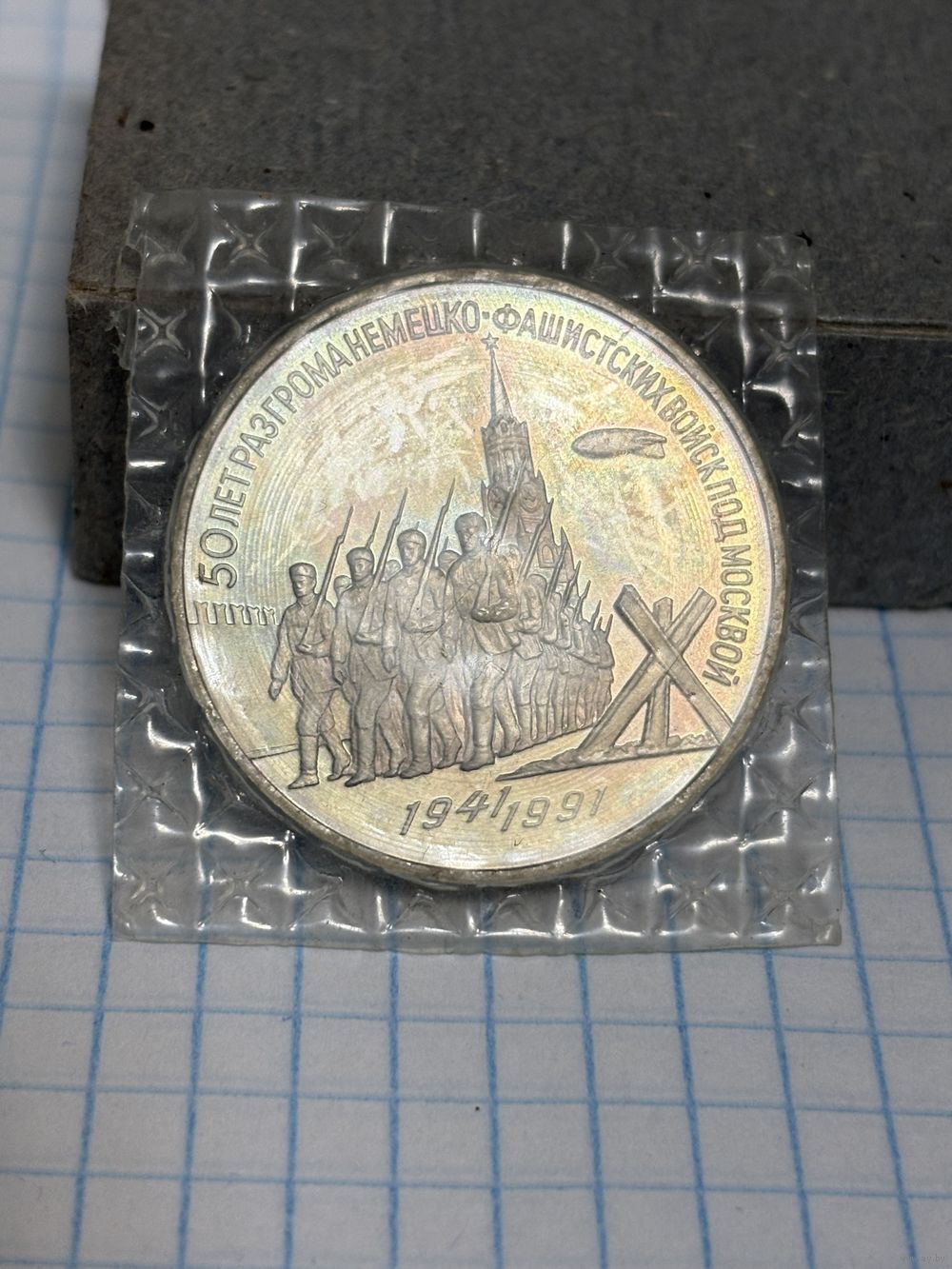 ЮБИЛЕЙНАЯ МОНЕТА 3 РУБЛЯ СССР 50 ЛЕТ РАЗГРОМА НЕМЕЦКО-ФАШИСТСКИХ ВОЙСК ПОД МОСКВОЙ
