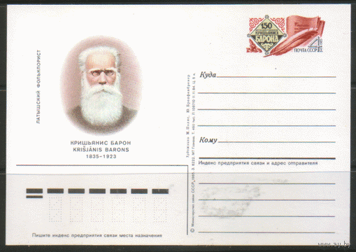 С. 151. ПК с ОМ. 1984. Латышский фольклорист К. Барон.