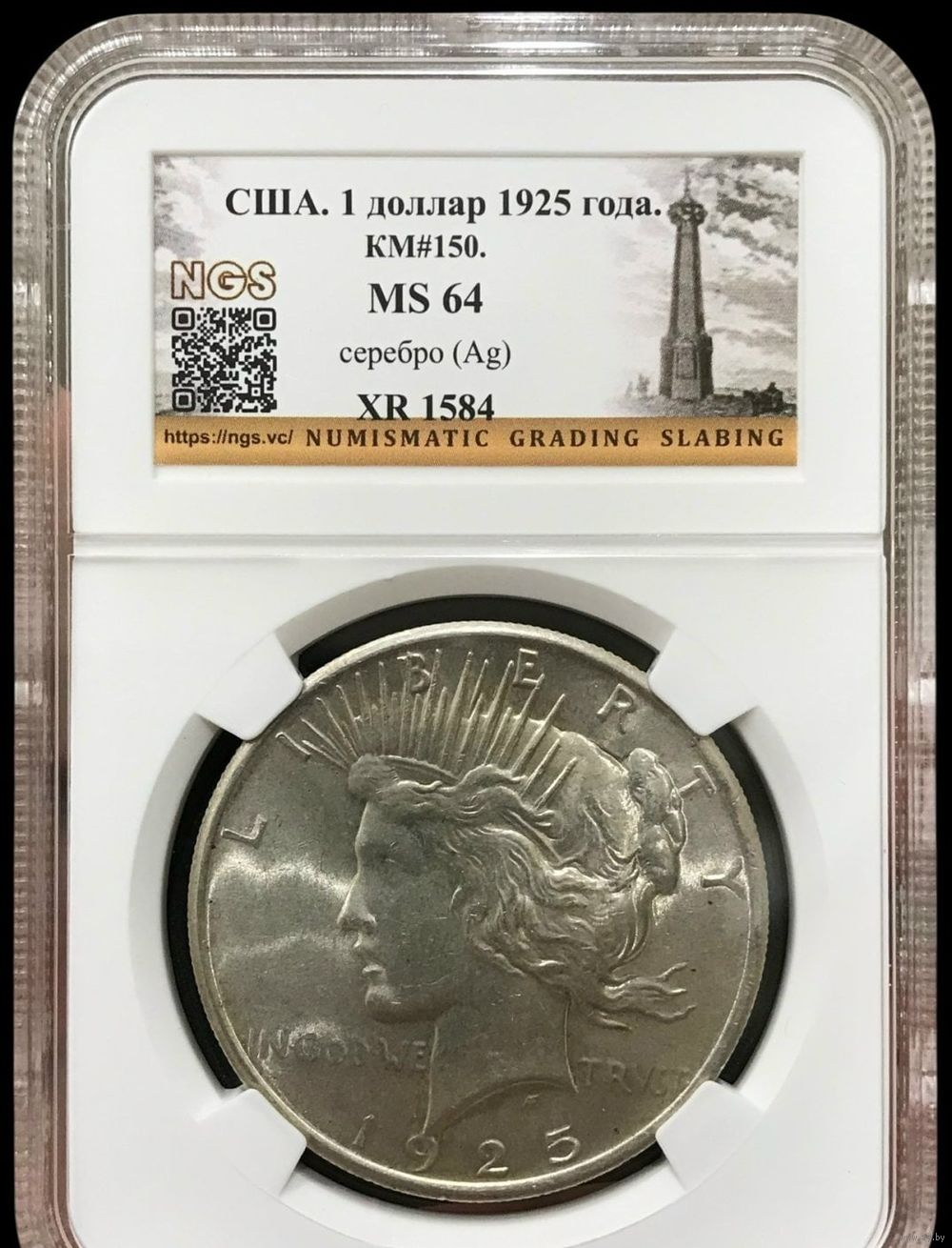 С 1р! 1 доллар 1925 Мирный США крупное серебро штемпельный блеск