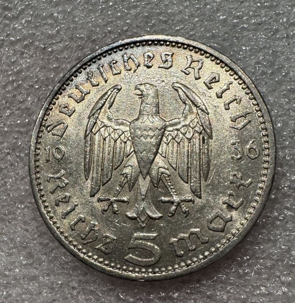 С 1р! 5 рейхсмарок 1936 Гинденбург Германия серебро в блеске