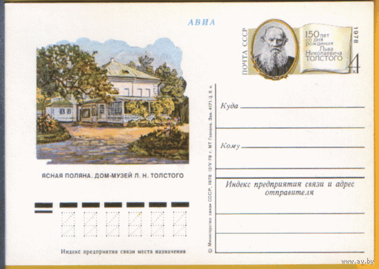 С. 64. ПК с ОМ. 1978. Ясная поляна. Дом-музей Л.Н. Толстого.