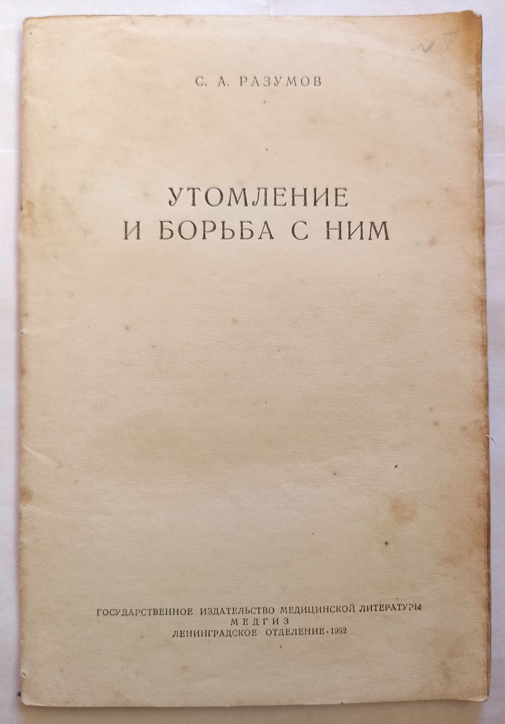С.А.Разумов Утомление и борьба с ним. 1952 г. Медгиз