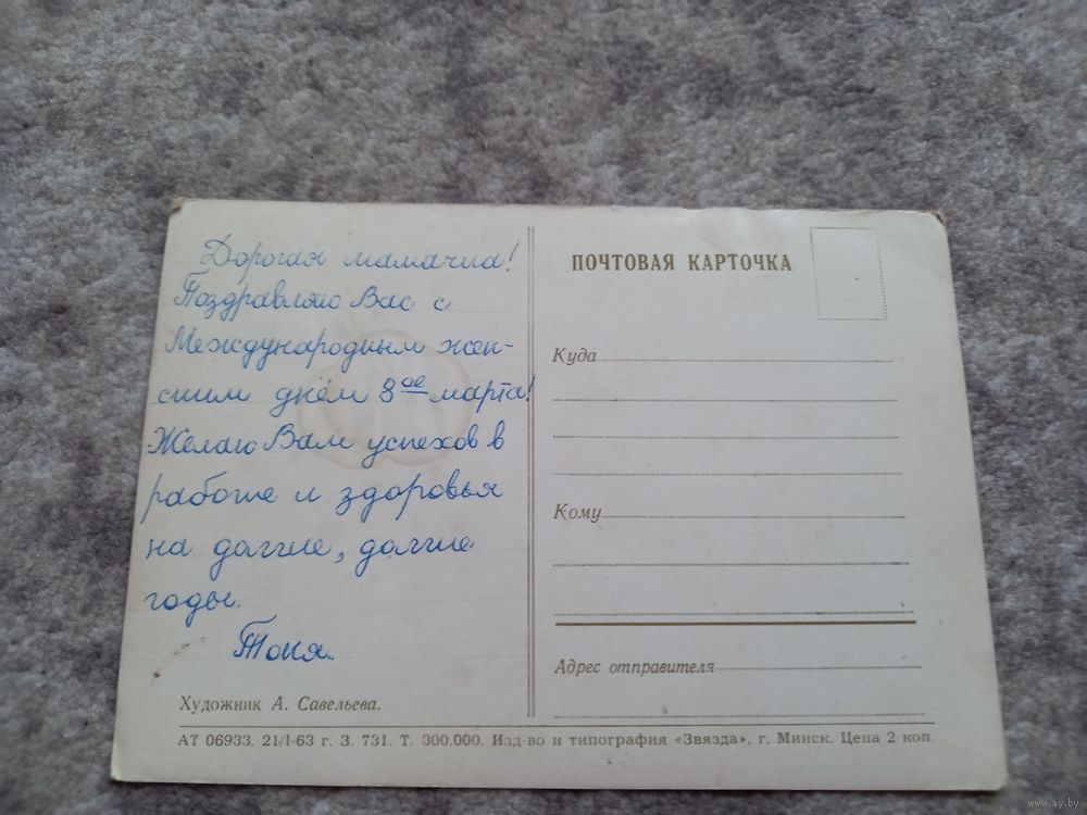 С днем 8 марта 1963 издательство в БССР редкая открытка Минск паштоўка