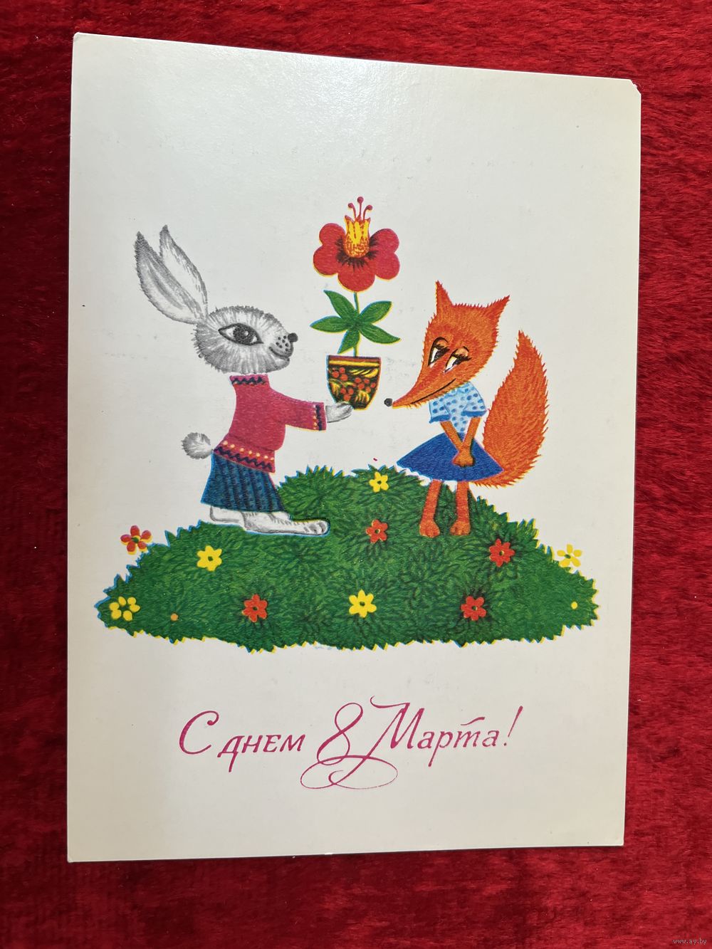 С Днем 8 Марта! Художник Д. Ратникова 1980 год. Чистая.