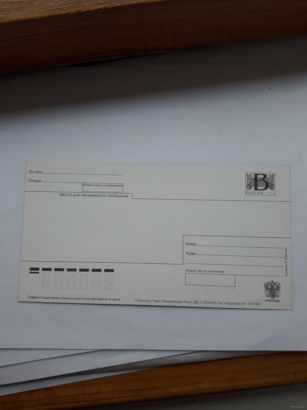 Полная предоплата до отправки лота по почте
