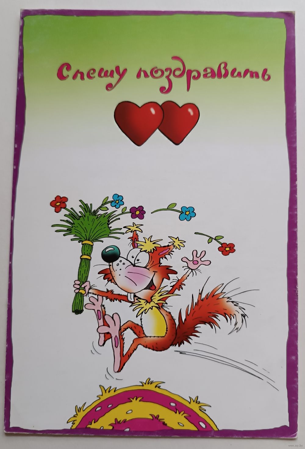 С Днём рождения! Поздравительная открытка двойная, 2003г., чистая