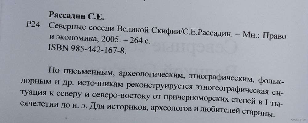 С. Е. Рассадин. Северные соседи Великой Скифии. Минск : Право и экономика, 2005 г. 261 с. Мягкая обложка. Обычный формат.