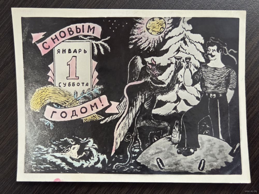С Новым годом 1950-е подписанная открытка СССР уменьшенный формат