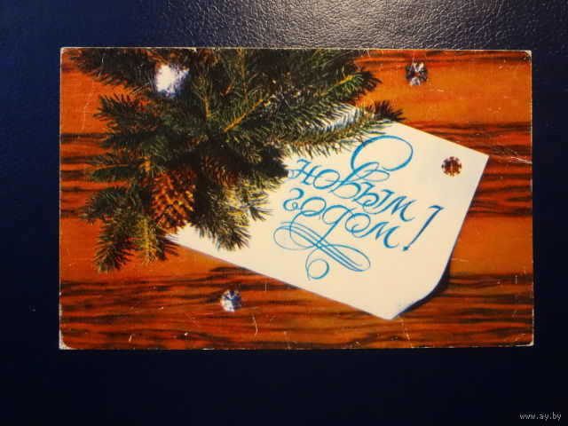 С Новым годом! 1974 г. Еловая ветка с шишками. подписанная.