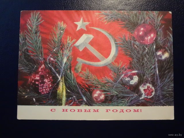 С Новым годом! 1974 г. Игрушки, серп и молот. подписанная.