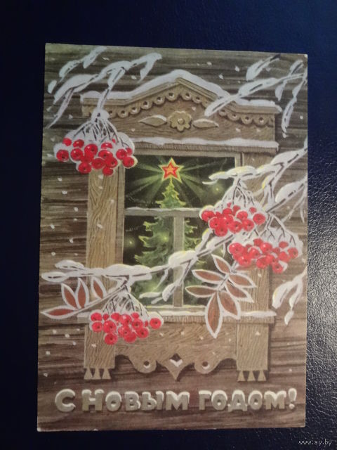 С Новым годом! 1974 г. Окно, рябина. подписанная.