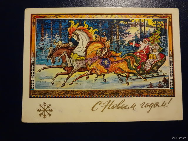 С Новым годом! 1975 г. Дед Мороз, Снегурочка, тройка. подписанная.