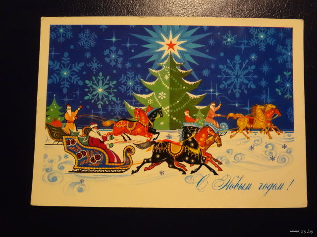 С Новым годом! 1975 г. Деды Морозы, тройки. подписанная.