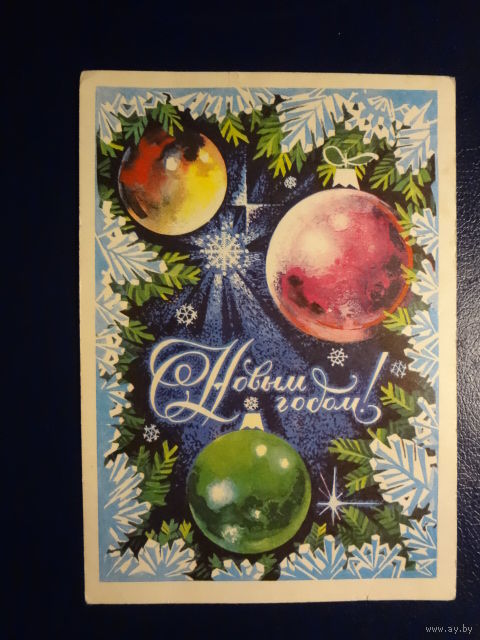 С Новым годом! 1975 г. Шары, снежинки. подписанная.