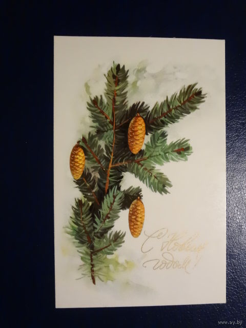 С Новым годом! 1975 г. Ветка с шишками. чистая.