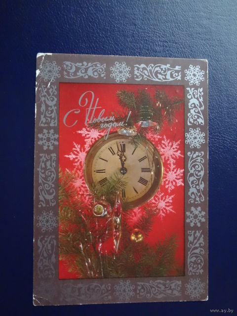 С Новым годом! 1976 г. Часы, игрушки. подписанная.