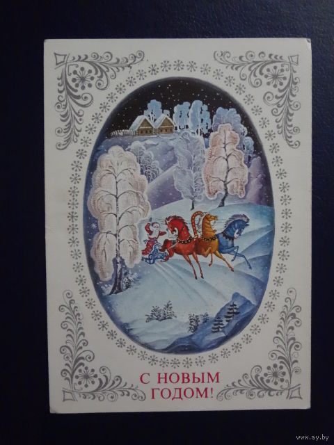 С Новым годом! 1976 г. Дед Мороз, тройка, дома. чистая.