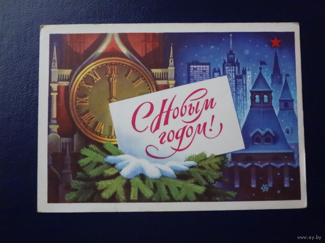 С Новым годом! 1976 г. Москва, Кремль, Спасская башня. подписанная.