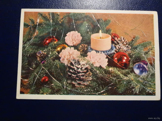 С Новым годом! 1977 г. Игрушки, свеча. чистая.