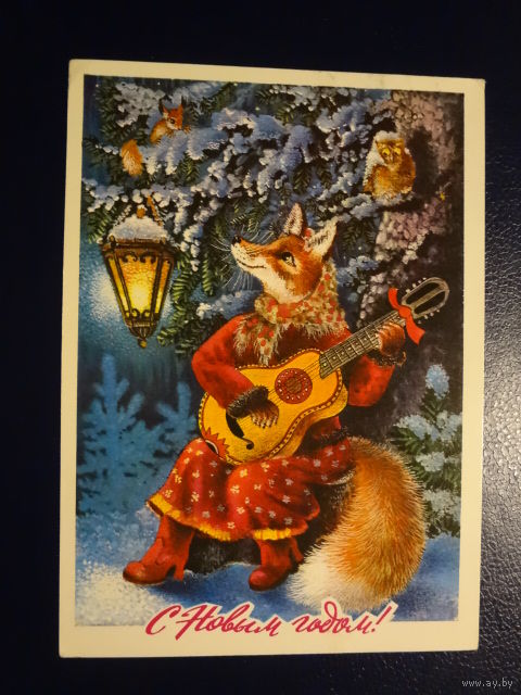С Новым годом! 1977 г. Лиса - гитаристка. подписанная.