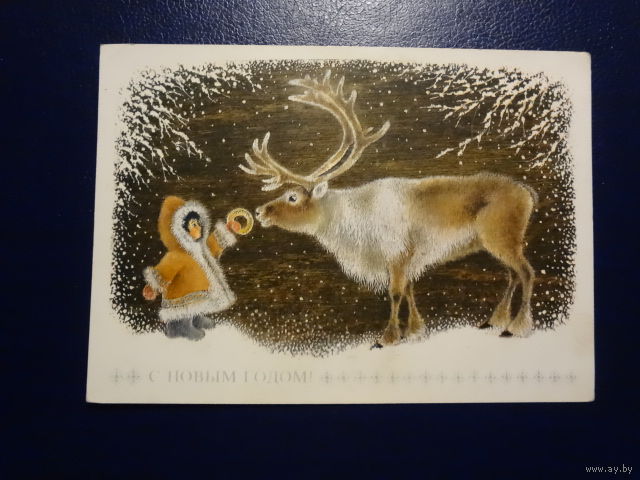 С Новым годом! 1977 г. Северный олень, ребёнок, баранок. чистая.