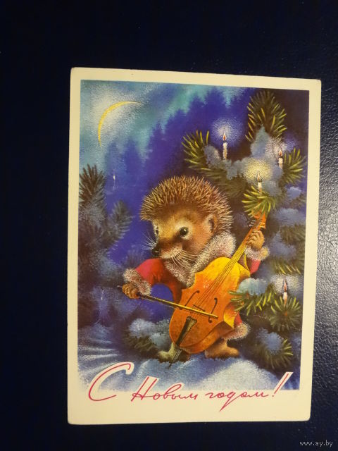 С Новым годом! 1977 г. Ёжик - виолончелист. подписанная.