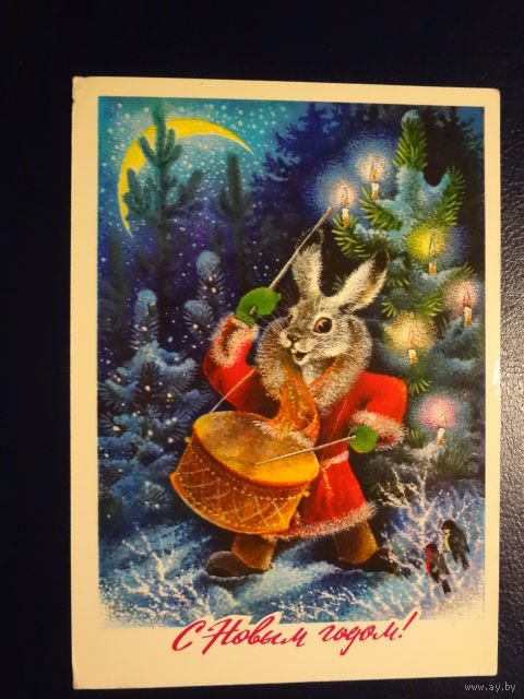 С Новым годом! 1977 г. Заяц - барабанщик. подписанная.