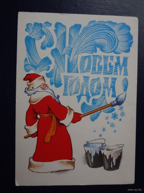 С Новым годом! 1978 г. Дед Мороз - маляр. подписанная.