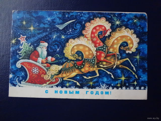 С Новым годом! 1978 г. Дед Мороз, тройка, самолет. двойная. напечатано позравление.