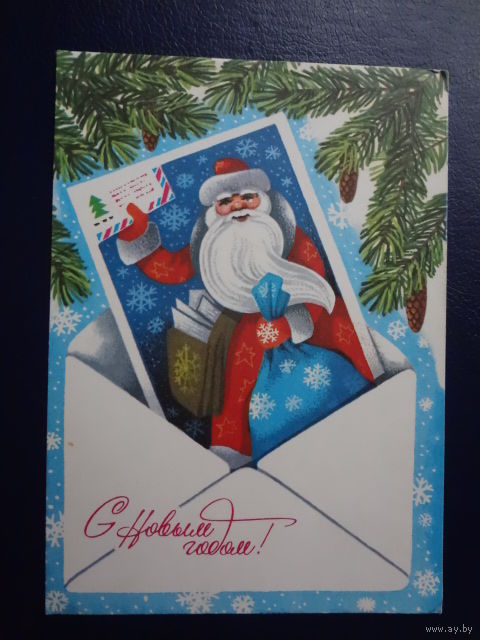 С Новым годом! 1978 г. Конверт, Дед Мороз на открытке. подписанная.