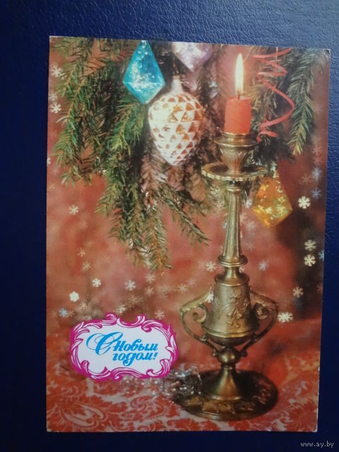 С Новым годом! 1978 г. Подсвечник, свеча, игрушки. подписанная.