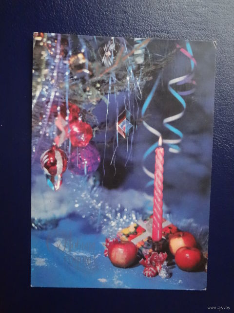 С Новым годом! 1978 г. Свеча, яблоки, конфеты. подписанная.