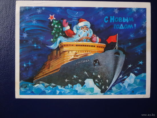 С Новым годом! 1979 г. Дед Мороз на ледоколе Арктика. подписанная.