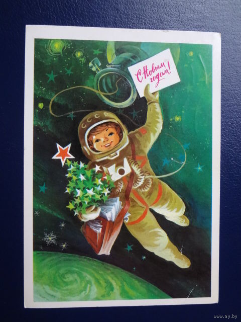 С Новым годом! 1979 г. Мальчик Новый год в открытом космосе. подписанная.
