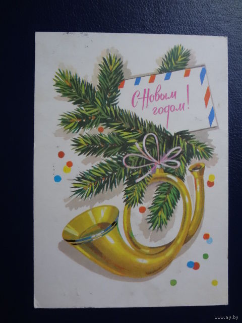 С Новым годом! 1979 г. Рожок, конфетти. подписанная.