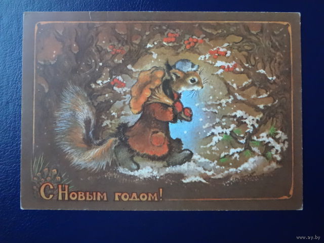 С Новым годом! 1980 г. Белка с грибом. подписанная.