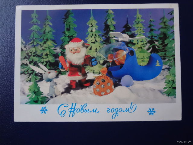 С Новым годом! 1980 г. Дед Мороз, мешок, вертолет. подписанная.