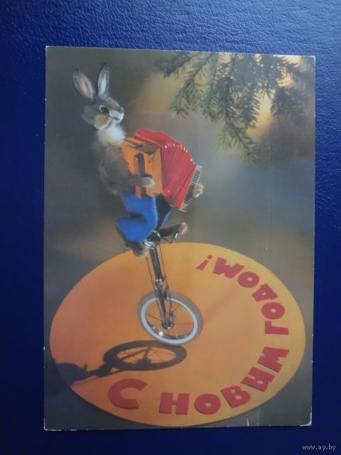 С Новым годом! 1980 г. Заяц в баяном на моноколесе. чистая.