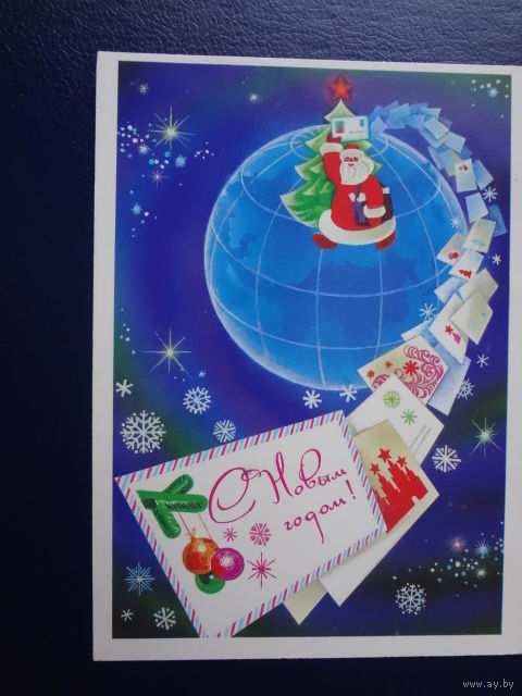 С Новым годом! 1980 г. Земной шар, Дед Мороз, письма. подписанная.