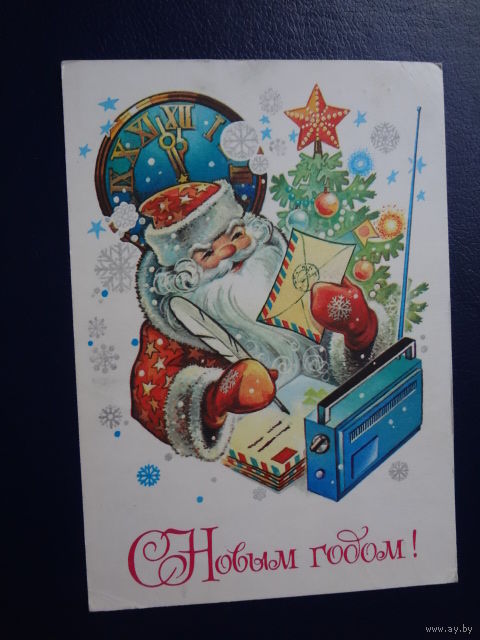 С Новым годом! 1981 г. Дед Мороз подписывает конверты, приемник. подписанная.
