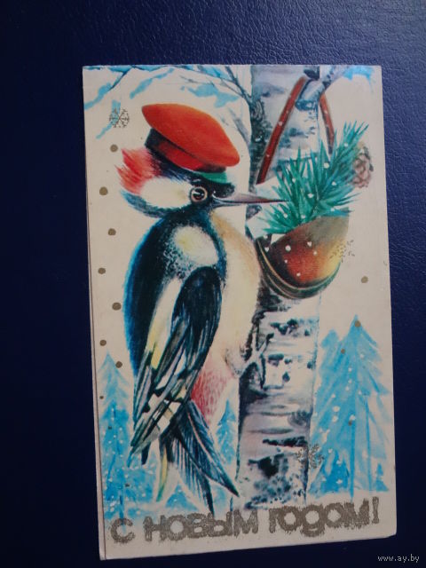 С Новым годом! 1981 г. Дятел, сумка. двойная. чистая.