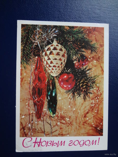 С Новым годом! 1981 г. Игрушки, дождик. подписанная.