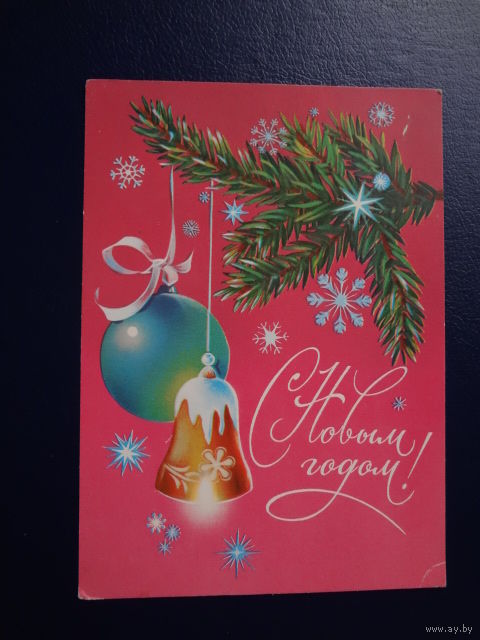 С Новым годом! 1981 г. Игрушки, снежинки. чистая.