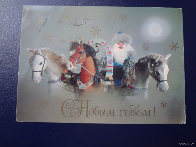 С Новым годом! 1982 г. Дед Мороз, тройка, снежинки. подписанная.