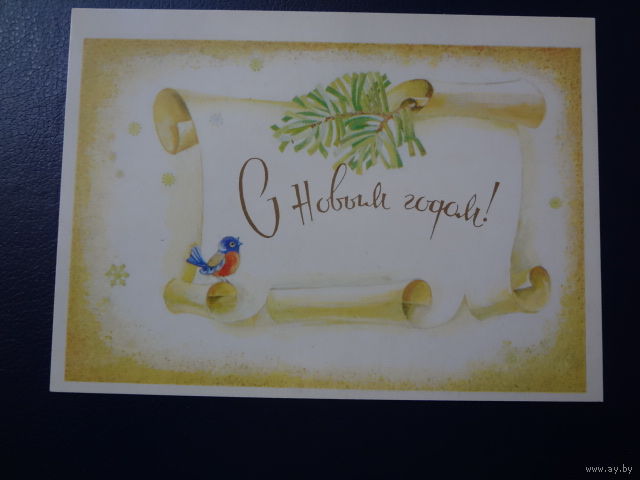 С Новым годом! 1982 г. Свиток, птичка. чистая.