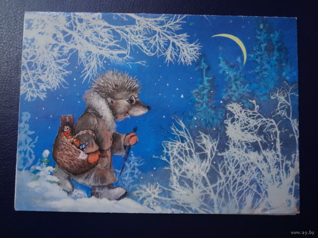 С Новым годом! 1982 г. Ёжик, корзинка. двойная, подписанная.