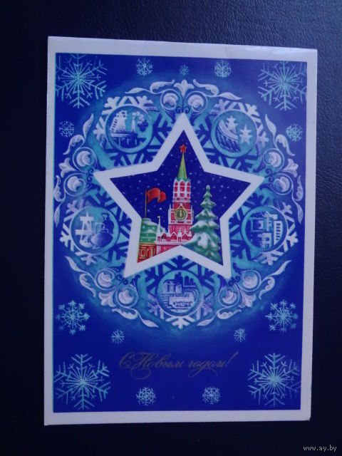 С Новым годом! 1982 г. Звезда, Спасская башня. двойная. подписанная.