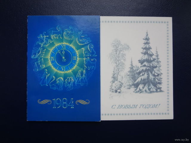 С Новым годом! 1983 г. Часы, знаки зодиака, календарик. двойная, чистая.